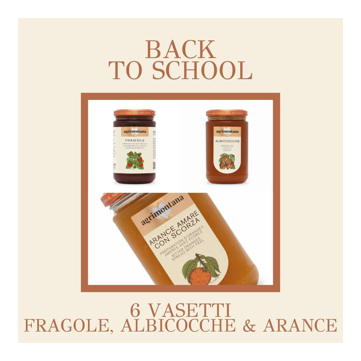 Un viaggio tra i colori e i profumi della bella stagione italiana. Le fragole dolci e profumate, le albicocche extra succose e le arance amare selezionate creano un'armonia perfetta di sapori complementari. Ogni confettura è preparata secondo la tradizione Agrimontana, rispettando i tempi di maturazione della frutta e utilizzando solo gli zuccheri necessari per esaltare le caratteristiche naturali di ogni ingrediente. Un pacchetto che porta sulla tavola la ricchezza e la varietà del nostro territorio.