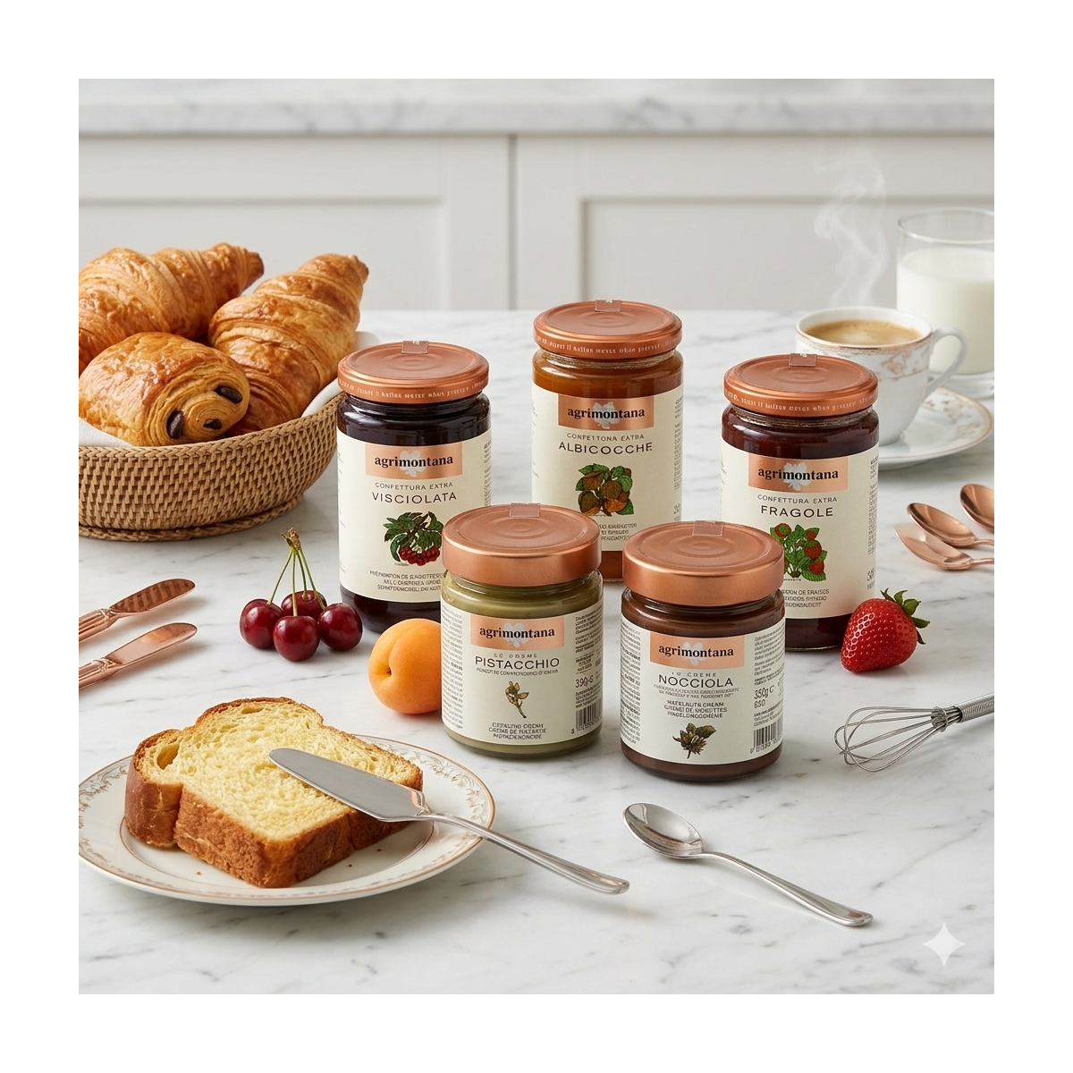 Colazione da Pasticciere è un bundle pensato per chi vuole portare a casa la qualità della pasticceria agrimontana nella colazione di tutti i giorni. Una selezione di prodotti studiata per essere abbinata tra loro: confetture, creme e specialità che trasformano pane, brioche e yogurt in un piccolo rito goloso. Si tratta di un bundle di prodotti senza confezione regalo dedicata: riceverai i singoli articoli così come li trovi normalmente a catalogo, da utilizzare subito o da organizzare come preferisci nella tua dispensa.